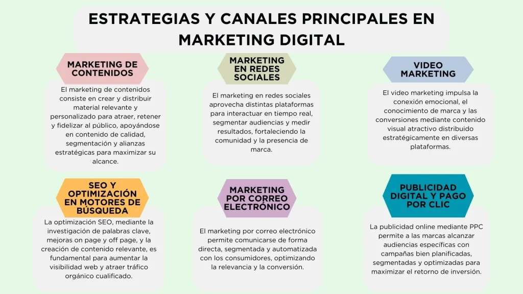La implementación de estrategias y canales en marketing digital es fundamental para las empresas que buscan destacar en un entorno competitivo. A continuación, se detallan algunas de las principales tácticas que se pueden adoptar para optimizar la presencia en línea y alcanzar los objetivos de negocio.